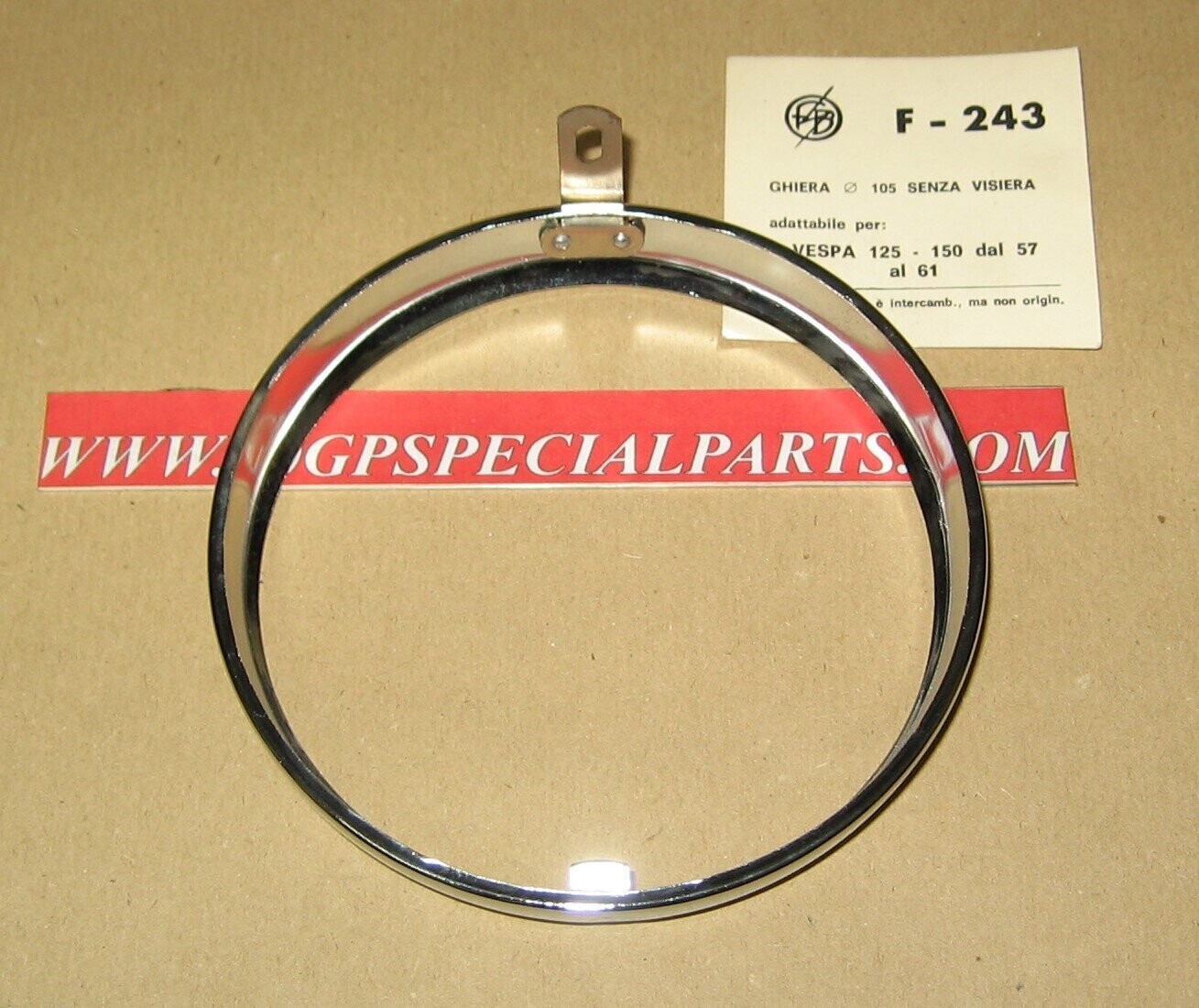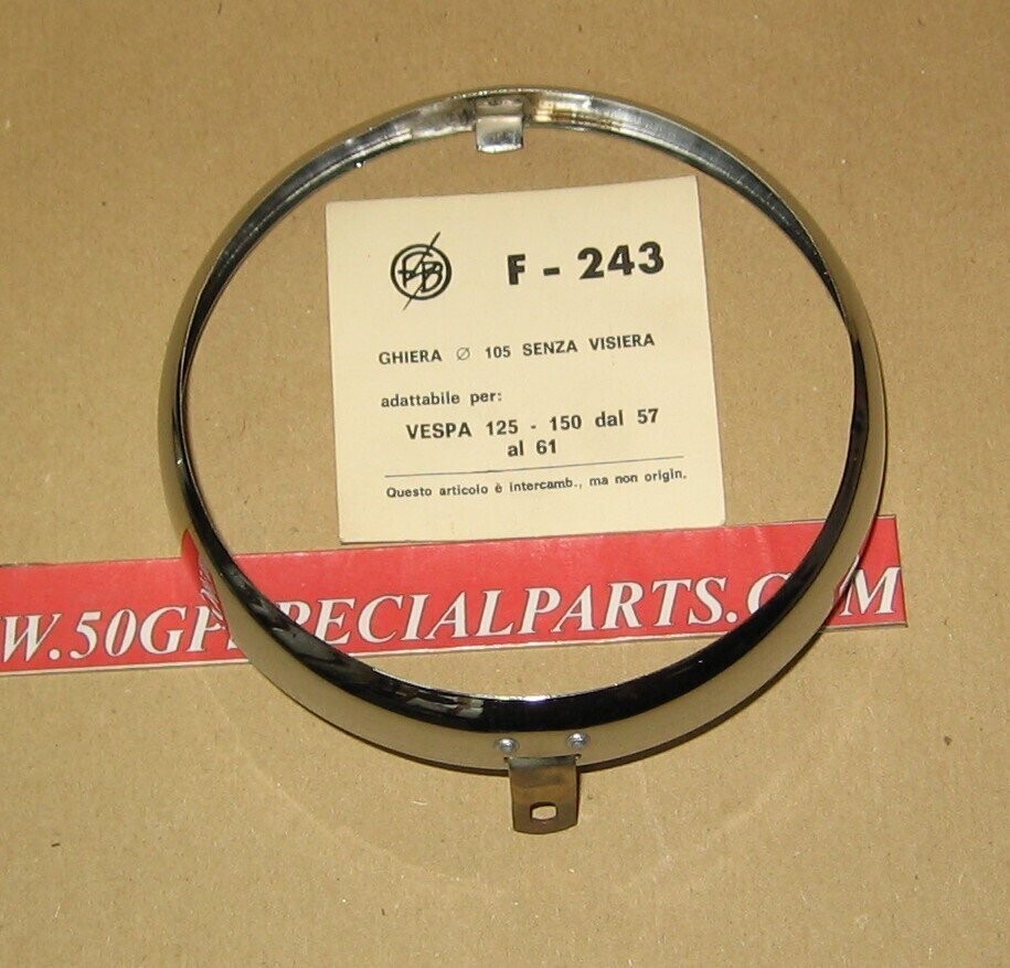 CORNICE CERCHIETTO FARO FANALE ANTERIORE VESPA 125 150cc. 1957-61