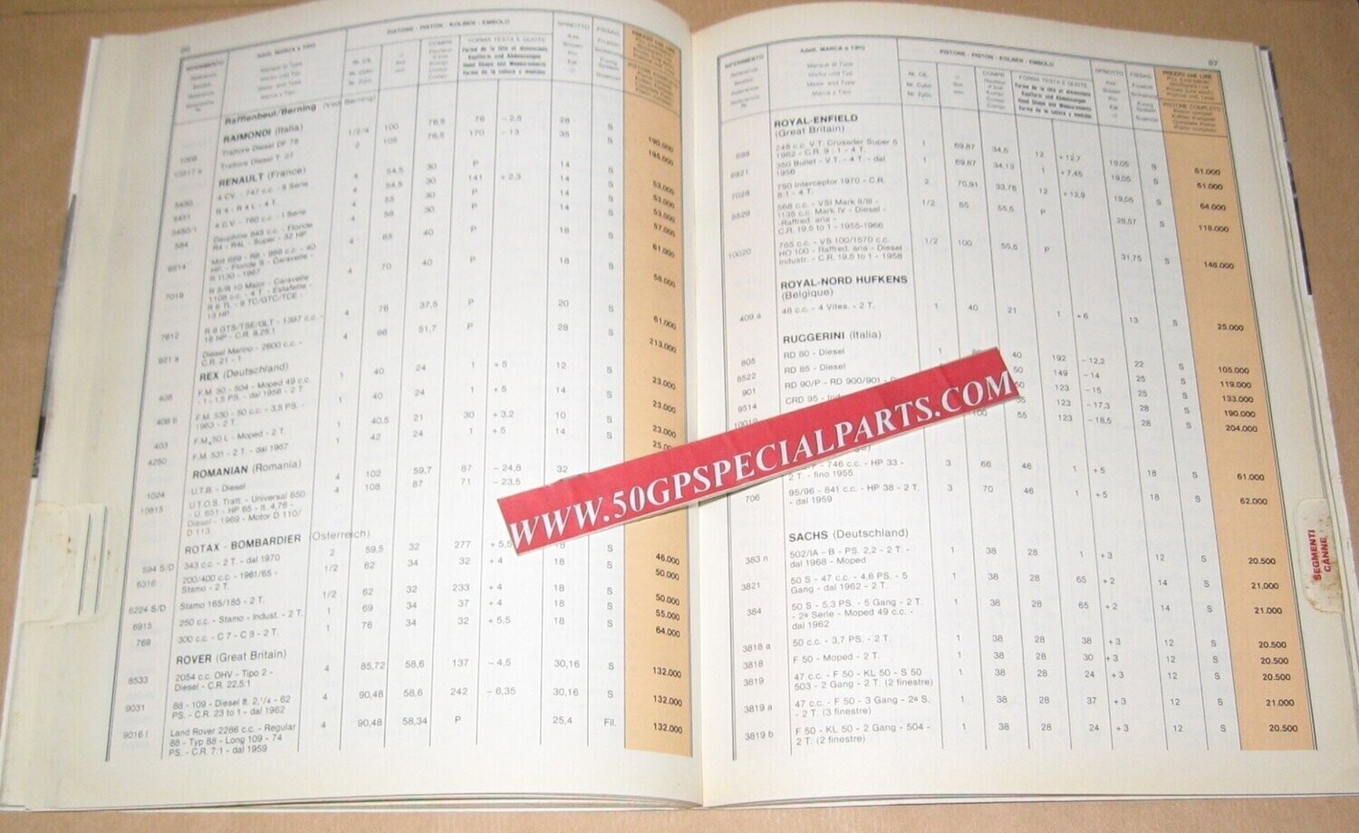 GANDINI CATALOGO PISTONI 1985 AUTO MOTO