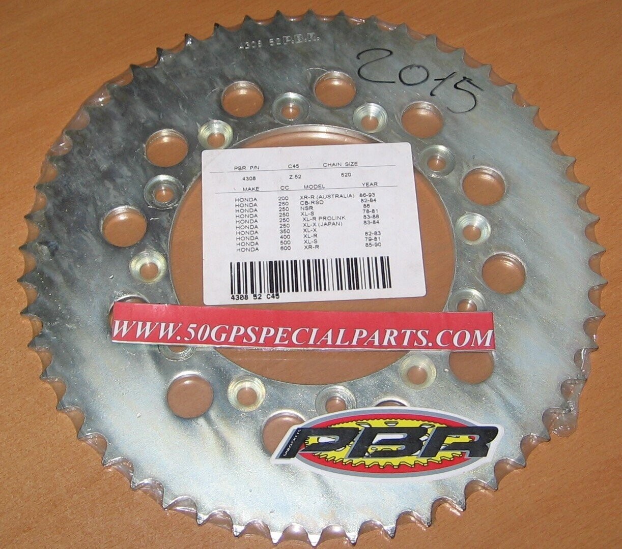 HONDA 200 XR-R -250 CB-RSD - 250 NSR - 250 XL-S - 250 XL-R PROLINK - 250 XL-X - 350 XL-X - 400 XL-R - 500 XL-S - 600 XR-R , CORONA PBR COD. 4308 PASSO CATENA 520 COME FOTO