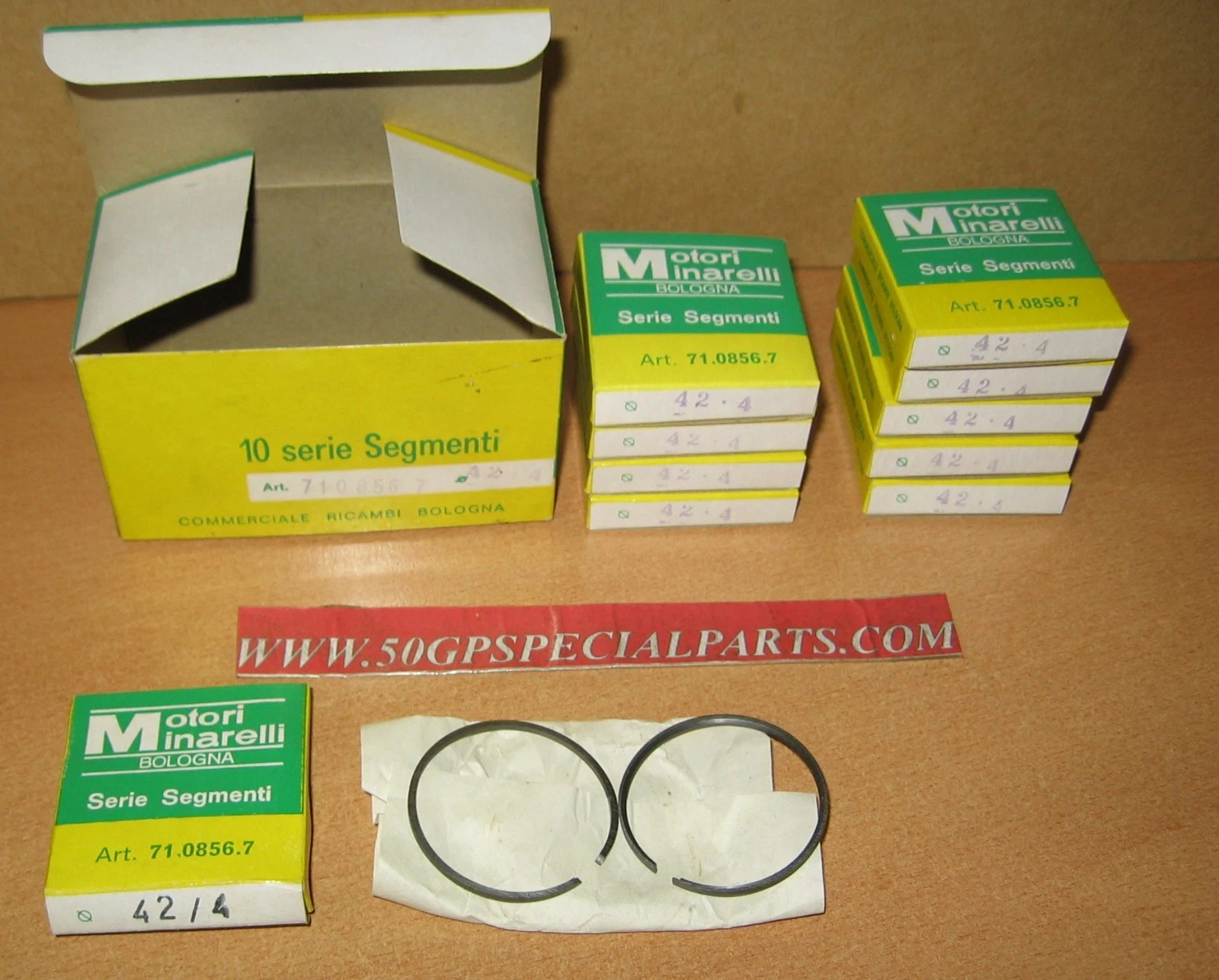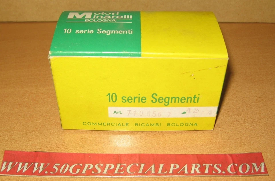 IN VENDITA SCATOLA CONFEZIONE MINARELLI N.10 COPPIE SEGMENTI MINARELLI D.42,4 1 SEGMENTO CAL 4 X2 +AC2 X1,5 ART. 7108567  COME FOTO